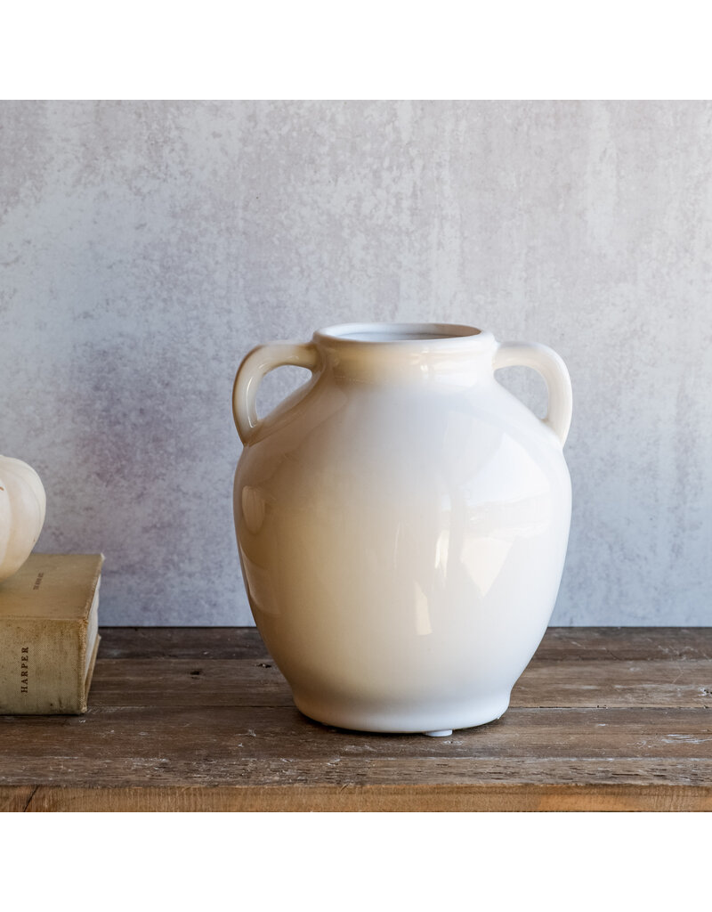 7" White Handle Vase