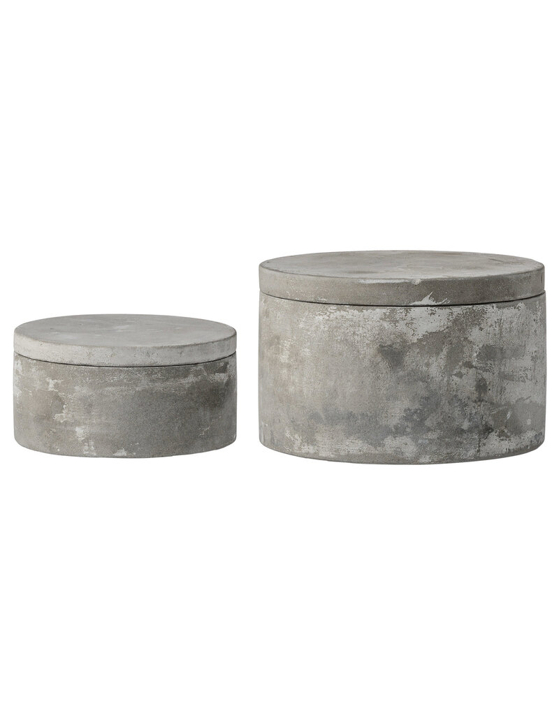 5" Round & 3-3/4" Round Decorative Cement Boxes w/ Lids, Grey, Set of 2