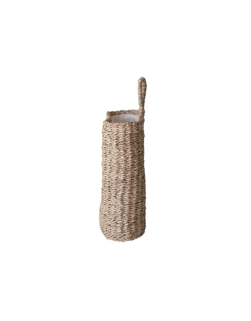 11-3/4"W x 3-1/4"D x 9-3/4"H Hand-Woven Seagrass Wall Basket w/ Loop & Cotton Lining, Natural